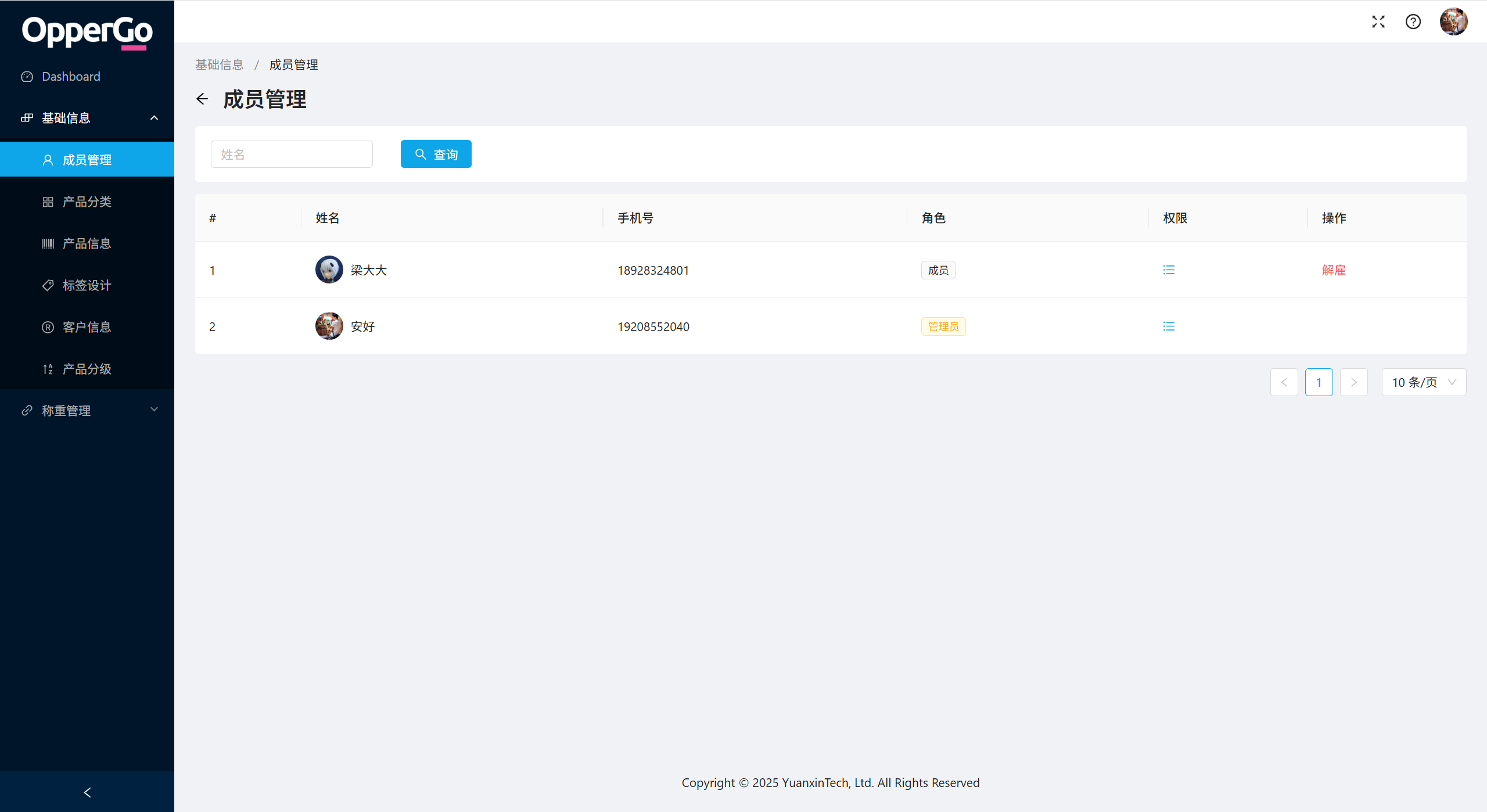 Web管理后台成员管理On this page成员管理 对成员信息进行管理,支持信息编辑和删除。 添加成员 OpperGo添加成员需在小程序端进行添加,参照 小程序端成员管理,Web管理端支持对成员信息进行编辑查询以及管理成员权限。